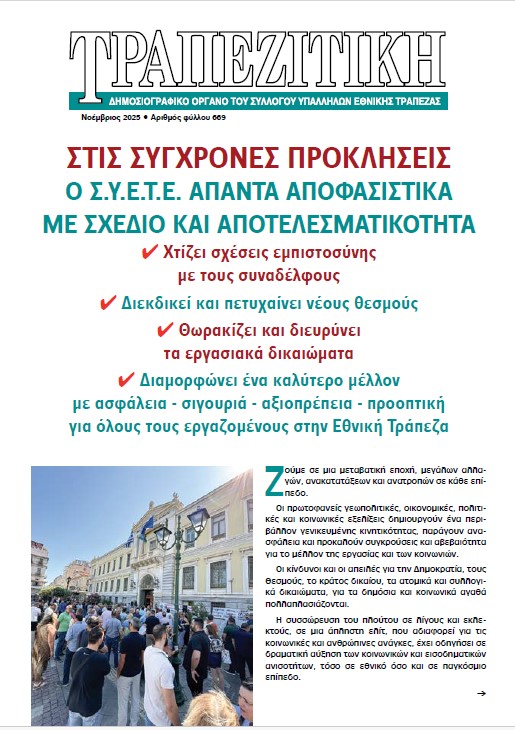 Η ΟΤΟΕ και σύσσωμος ο τραπεζοϋπαλληλικός κλάδος συντάσσονται με όλους τους εργαζόμενους της χώρας και διεκδικούν: